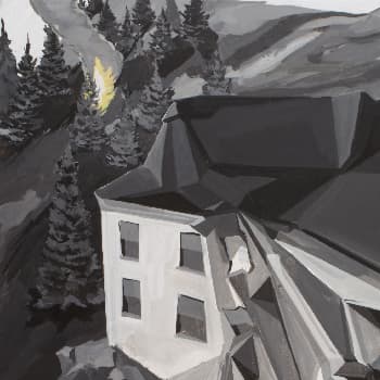 • Untitled (Torqued Building) - Acrylic on Paper - 27" x 21"}